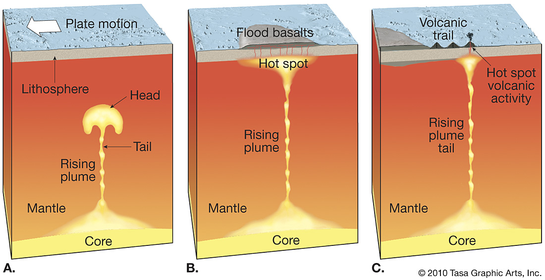 Since these mantle plumes are stationary, the tectonic plate’s motion over a plume will lead to a linear volcanic island chain (Winter, J.D. 2010). Using this, scientists can remotely trace the tracks of the Galapagos plume on the Nazca Plate. And were the most current volcanism lies is where the mantle plume resides.